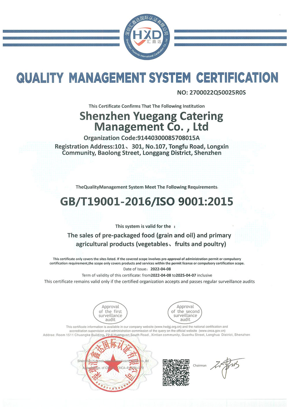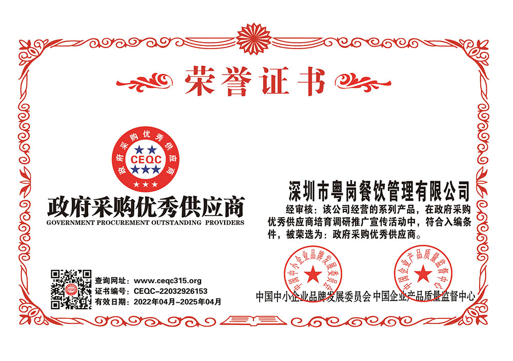 深圳市粵崗餐飲管理有限公司,是一家集蔬菜種植和農副產品配送為一體的專業型餐飲公司,主要為學校、工廠企事業機關單位提供蔬菜和農副產品配送服務。公司自成立以來始終以質優(yōu)價廉、服務至上為原則,嚴格按照ISO:9001國際標準體系進行管理。同時建立了行業領先的配送中心、大型冷庫和保鮮庫、檢測中心以及專業化的配送團隊,能長期安全、穩(wěn)定、準時的配送貨物。我們所有蔬菜均經過初步加工、無黃葉,無泥沙等雜質,利用率達97%以上...保障向用戶提供的各類食材的衛生和質量。公司為了適應不同客戶的需求,配有專業人員和配送車輛,實行“一對一”的服務體制,一心一意的為客戶服務,秉承粵崗誠實守信、服務第一、客戶至上的服務標準,真正讓客戶花最少的錢吃最好的菜?;泹彾嗄陙砗我孕佬老驑s,因為我們知道只有勇于擔當責任,才能承擔更大的責任,就是因為 粵崗員工貫徹公司態(tài)度決定一切、細節(jié)決定成敗的真理,從質量抓起,從服務做起,才創造了如今的規(guī)模化供應、統一性配送、專業化服務的粵崗。
